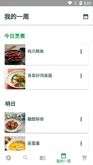 2、在【我的一周】页面,点击【更多启发】,来搜索选择一周菜谱;