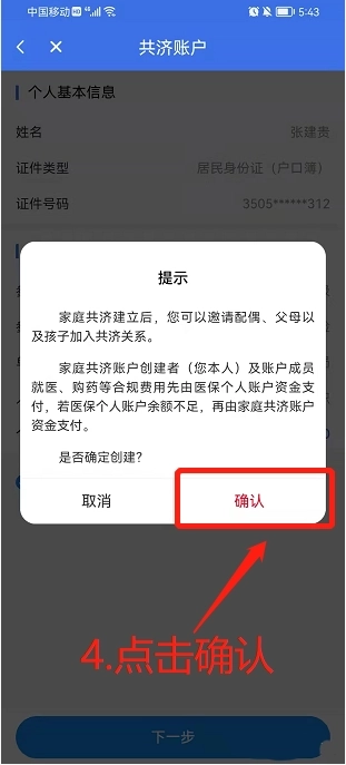 点击“下一步”确认是否创建家庭共济账户