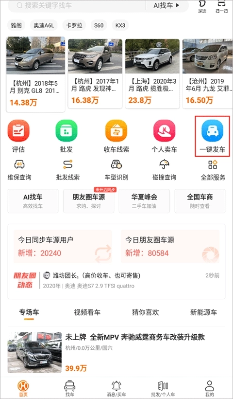 1、打开软件后,在首页点击“朋友圈车源”
