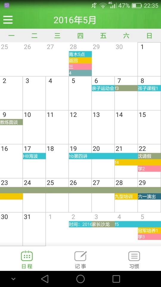 习惯养成,自定义记录日常事物,如运动、日常学习等信息;