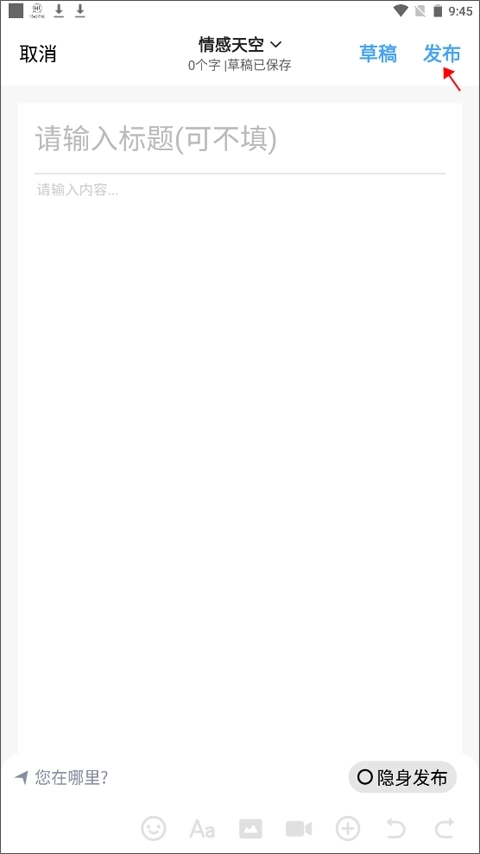 (4)选择你要创作的板块后,就可以填写具体的故事内容了,要记得结合平台给出的条件来进行创作,创作好后就可以点击右上角的“发布”按钮,将自己的故事上传到系统里面,等待工作人员审核即可成功发布。