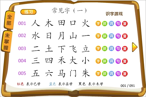 通过识字游戏中的“字”“拼”“词”“句”“复”,能快速、精准的进行复习