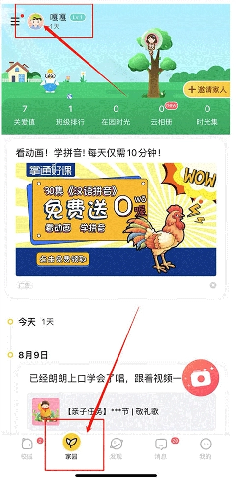 1、在家园页面,点击宝宝头像