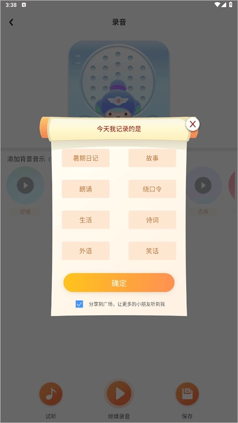 3、点击开始录音,录制完成后点击保存,选择好分类就能进行上传了。