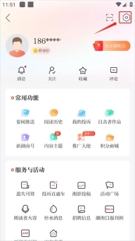 1、用户在“我的”页面选择“设置”按钮。