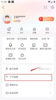 1、在“我的”页面,也可以进行全局字体的大小修改,或是在新闻详情页顶部,点击“T”字,可以进入字体大小设置
