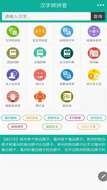 这款汉字转拼音应用是一款功能全面的输入法工具,具备汉字转拼音、字典检索、成语查询等基础功能。它收录了海量经典词汇与典故解析,助力用户拓展汉字语言储备。软件还设有多音字查询、押韵辅助等特色模块,为学习与创作过程提供便捷支持。此外,该应用支持单字、词语及句子的语音发声,内置普通话口语训练小游戏,能够有效帮助用户提升口语水平。同时,它整合了辞典、成语词典、同义反义词典等实用工具,并涵盖拼音版唐诗宋词、名人名言、趣味歇后语等丰富的休闲内容。在更新迭代中,新增了真人发音和部首查字功能,堪称学好普通话的得力助手。