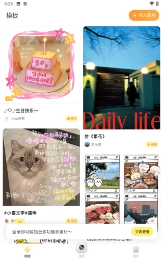 配合新上线的「话框」功能,你可以更轻松地为照片添加对话框等多种文字样式。平台还提供海量分类模板推荐,涵盖天气、美食、萌宠等丰富主题,让你一打开就能快速找到心仪的模板。