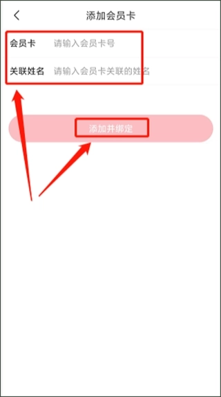 4、进入添加会员卡的界面后,输入会员卡信息与关联姓名,点击“添加并绑定”按钮即可完成操作。