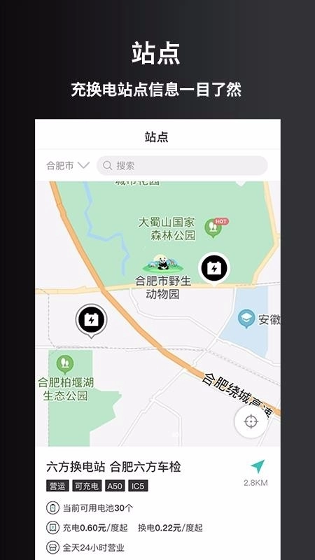 4、通过导航操作查找站点,满足用户的周边充电、换电需求;