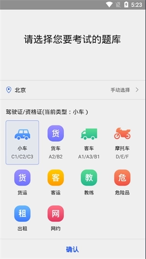 1、下载安装好后,打开12123驾考题库,首先要选择考试的类型,这里以小车为例;