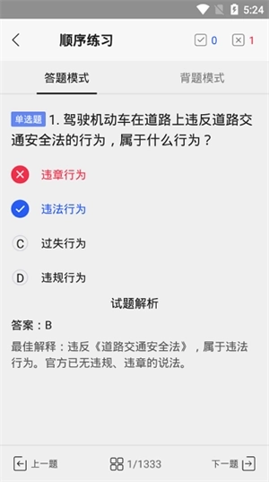 在我们科目一的练习中我们首先把科目一1300多道题目认真刷二遍,然后就开始答题模式,因为科目一的题目中有很多自己看二次就可以快速记忆的题目,不需要死记硬背,随后将自己出现错误的题目收藏,开始背题模式,最后觉得自己已经牢记以后进行全真模拟考试。