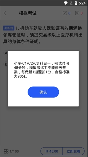 4、你也可以进入考试页面,考试页会提供时间和答题数;