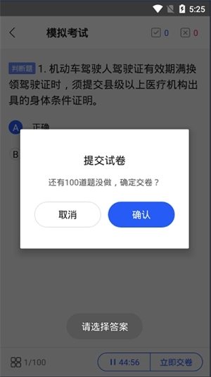 5、要是觉得写的差不多了可以直接交卷,软件会提醒你,有没有没做的;