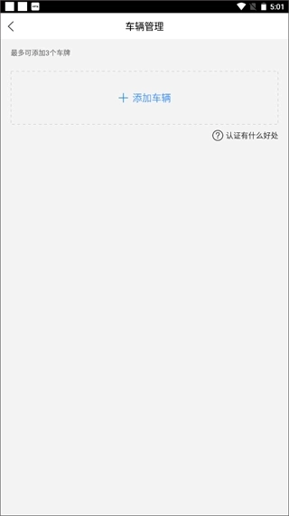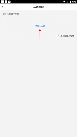 2、这里会显示你添加的所有车辆信息,最多可添加3个车牌,点击“添加车辆”。