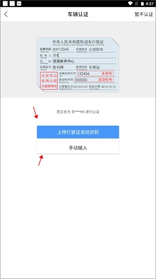 5、上传行驶证照片或手动输入,系统审核后就能最终完成绑定目标了。