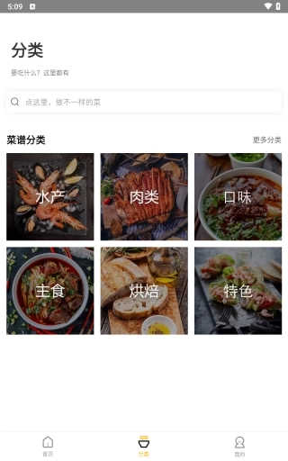3、分类栏根据菜的类型分类,用户不知道想做什么菜时,可以来这里寻找