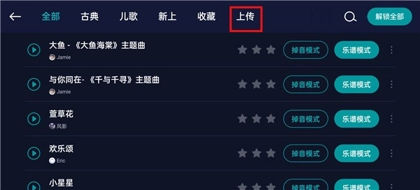 3、点击从“懂音律”app上传AI乐谱,这个就需要去专门下载这个乐谱app,上面有大量的乐谱,可以从上面下载后上传到此款软件