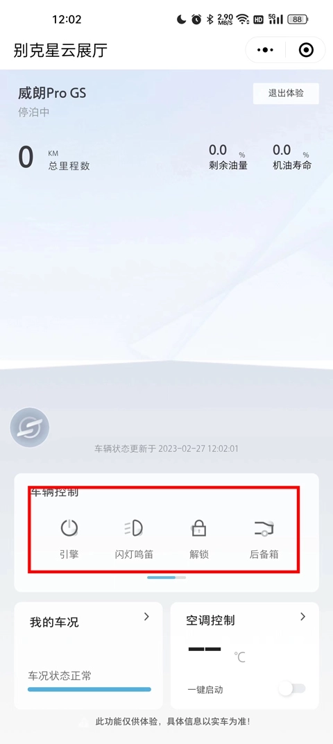 6、完成绑定操作后,就能够远程操控车辆执行引擎启动/关闭、闪灯鸣笛、车门解锁、后备箱开启、空调调节等功能。