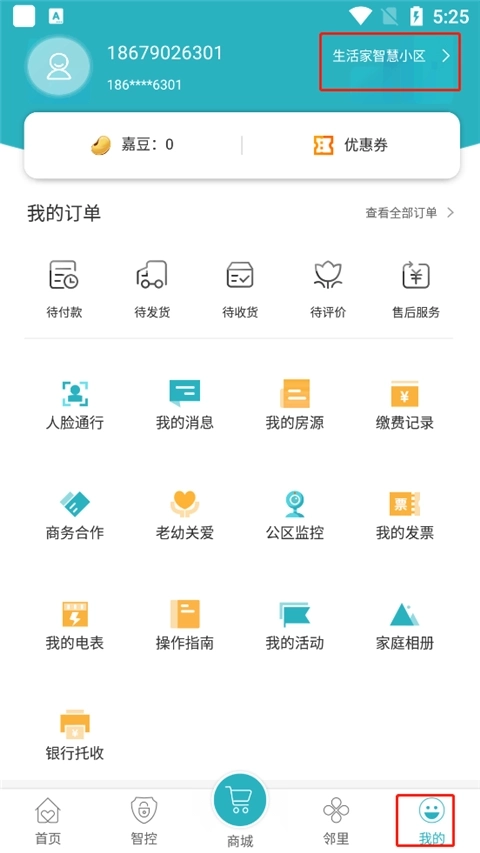 1、点击进入软件,选择我的,现在生活家智慧小区;