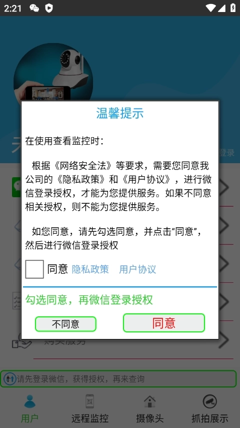 1、支持微信登录功能,用户可进行隐私政策查看、用户协议查阅、反馈意见提交、购买服务操作以及授权申请办理。