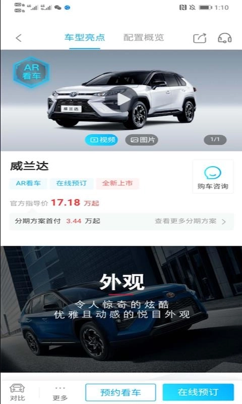 车型信息记录完整,拥有AR看车服务以及线上预订服务,看到合适的车辆就下单吧;