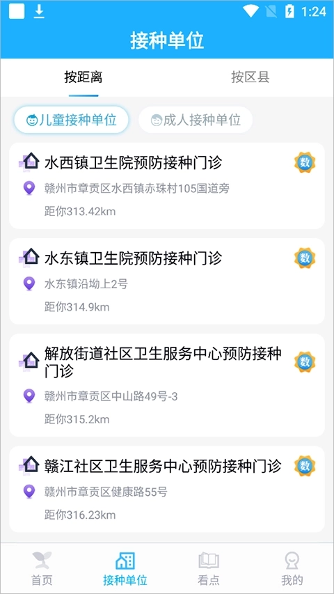 3、附近儿童或成人接种单位地理信息查询导航