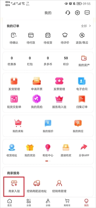 2、进入后首先完成店铺注册,注册后返回我的界面再次点击商家入驻