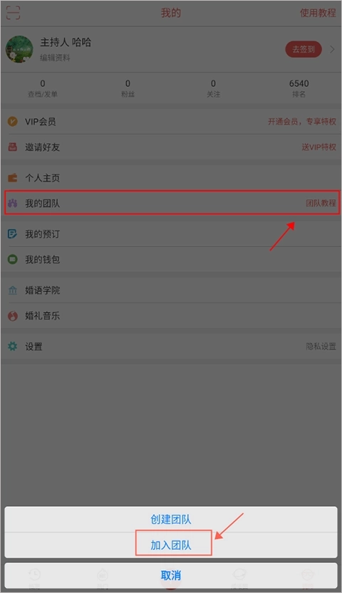 1、在我的页面点击“我的团队”——选择“加入团队”