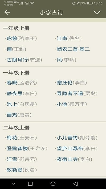 4、在首页,可预览古诗文的标题