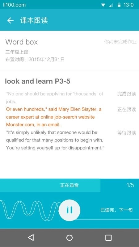 同步,与您的英语学习进度保持一致,通过掌上设备轻松完成老师布置的作业;