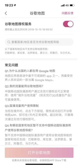 2、然后就会进入谷歌地图的服务页面,在顶部可以看到谷歌地图授权服务,点亮方框中的按钮确认授权,开启之后选择打开谷歌地图即可,不过还是建议没有地图的先下载谷歌地图。