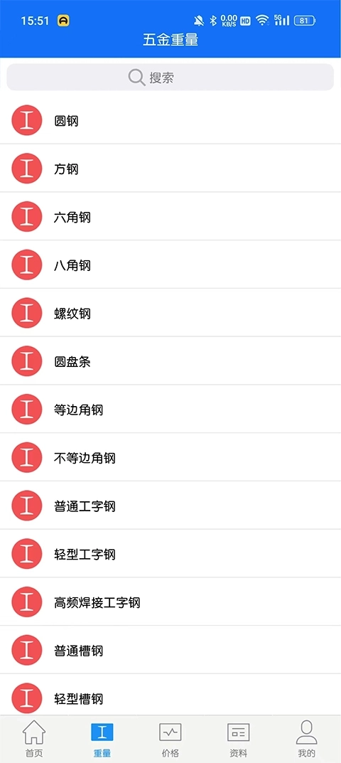 蓝光五金手册主要提供三大功能,分别是查询钢材理论重量、了解建材市场价格、掌握五金手册知识三大功能,可查询圆钢、方钢、六角钢、八角钢、螺纹钢等100多种钢材理论重量,同时还可以查询建材的最新的市场价格以及五金的详细常用资料,能够帮助用户们快速锁定需要的钢材,提高工作效率。