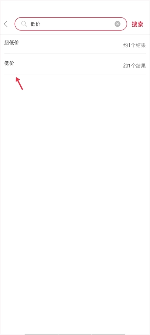 (2)在搜索框里输入“低价”这个关键词,页面随即会出现两个下拉选项,从中点击任意一个即可。