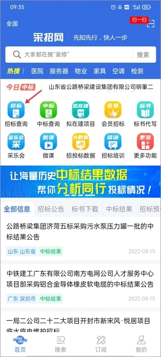 2、你可以在搜索框里输入想要招标的项目关键词,接着点击右侧的搜索按钮,从中挑选出你感兴趣的招标项目。