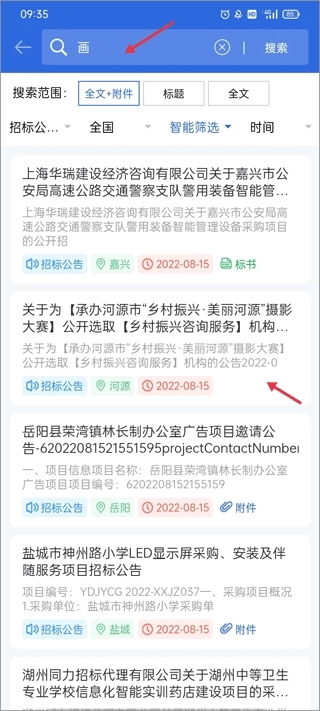 1、海量招标项目搜索,内容与中国采招网网站完全同步