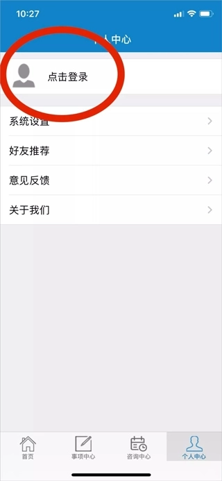 打开应用后进入“个人中心”页面中点选“点击登陆”