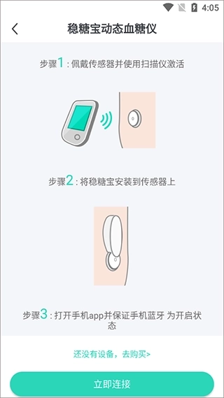 1、打开稳糖app并登录,点击首页上方的【连接】按钮
