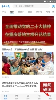 用户在本站下载幸福万盛app后打开,进入新闻首页,在这个页面能查看推荐新闻、党建新闻、时政讯息等内容,之后点击“我的”选项。