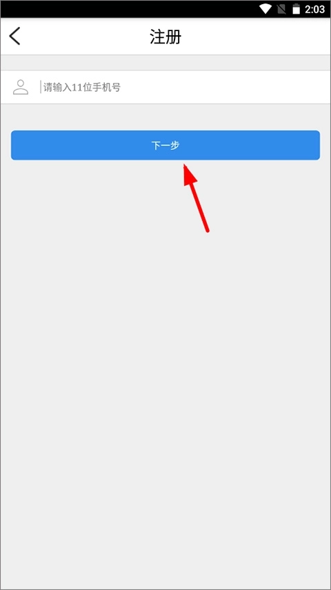 3、进入注册页面,用户输入手机号点击下一步即可;