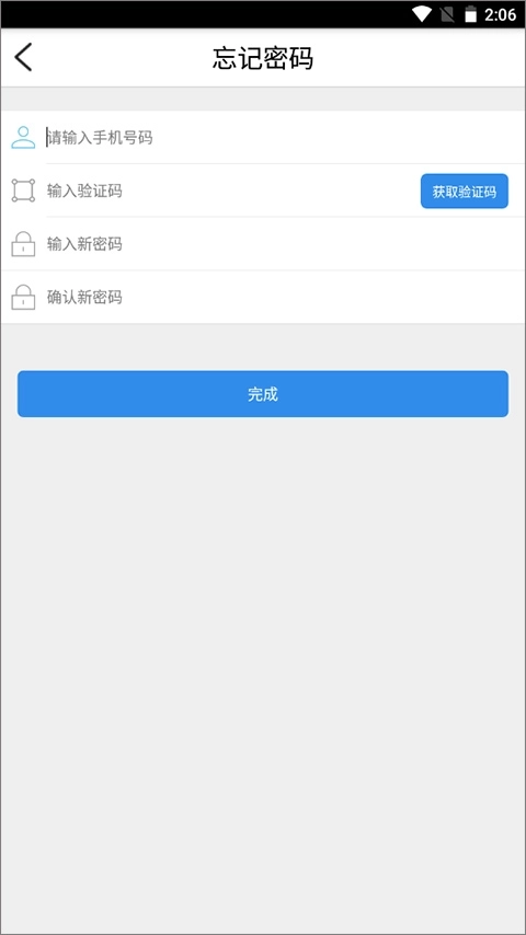 5、在忘记密码页面中重新输入手机号、验证码以及新密码,完成这些步骤后即可返回登录页面进行登录;