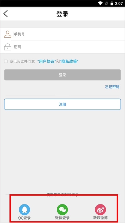 6、此外,用户还可以在登录页面中选择第三方账号进行登录,登录后第三方账号即可自动注册为幸福万盛app账号。