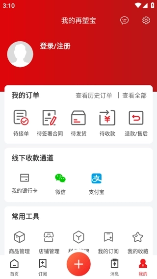 1、打开再塑宝官方版软件,在首页能看到诸多功能选项,像再塑超市、再塑求购、线上卖货等都包含在内。