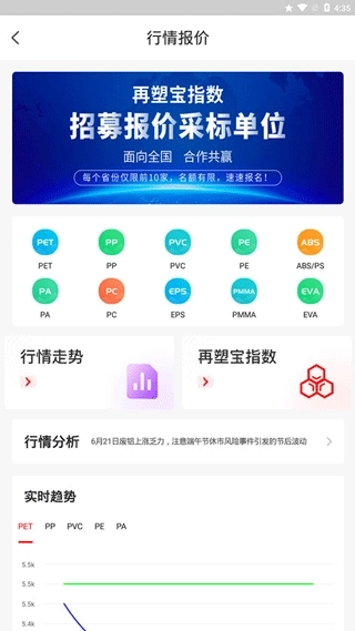 1、点击再塑宝app上方的“行情报价”