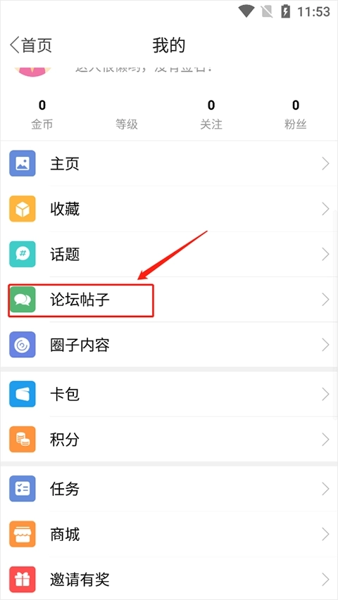 2、点击“论坛帖子”。
