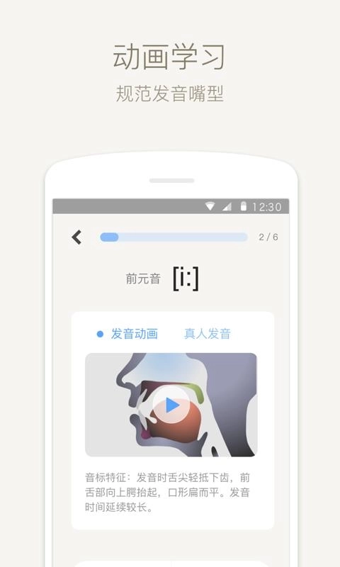 4、动画发音:规范的发音嘴型,模仿发音嘴型,让发音更加标准;