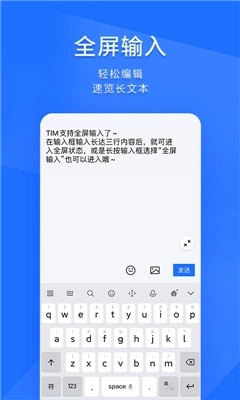 TIM应用程序还具备全屏输入、收藏服务、电话会议等丰富功能。在全屏输入模式下,用户能够便捷地编辑和查看较长的文本内容;而借助收藏服务,用户可以直接把各类工作文档、图片等内容收藏至收藏夹里。