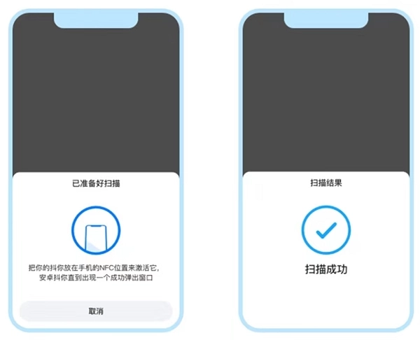 4、准备好扫描弹窗出现后,请将您的Dtap放入手机的NFC感应区域,等待扫描成功的提示出现即可完成绑定
