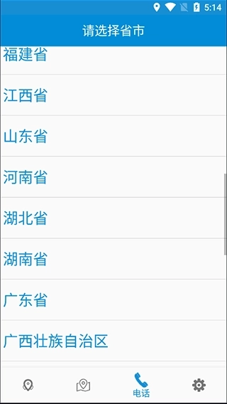4、切换到“电话”页面,你还可以下拉寻找所在的省份;