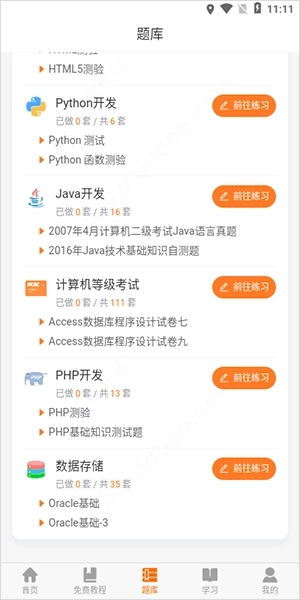 3、可以在题库中选择今天学习课后练习;